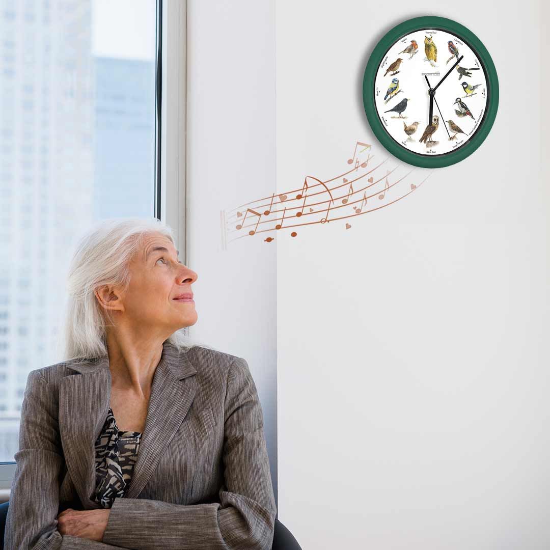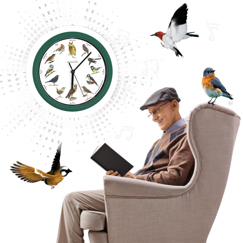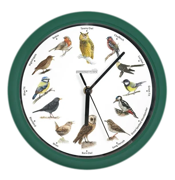 **Si los sonidos no coinciden con la imagen del ave, ubica la aguja horaria en las 12 y oprime el botón de la caja de sonidos que está detrás del reloj, hasta encontrar el audio de la Lechuza.
